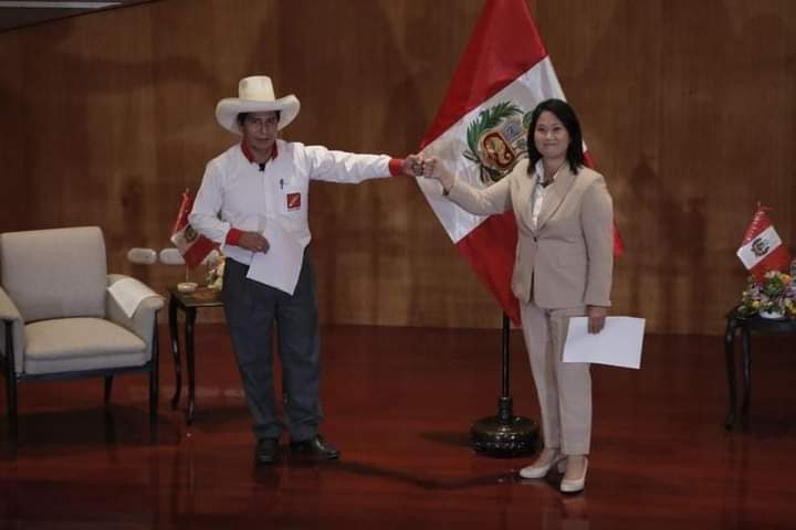 Los candidatos presidenciales Pedro Castillo y Keiko Fujimori firmaron de manera oficial la ‘Proclama Ciudadana’ promovida por la Conferencia Episcopal del Perú, la Unión de Iglesias Cristianas Evangélicas del Perú, la Asociación Civil Transparencia y la Coordinadora Nacional de Derechos Humanos (CNDDHH).