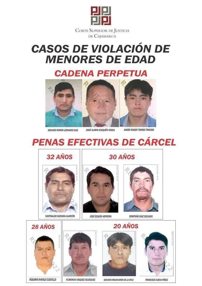 En el mes de enero, confirmaron la cadena perpetua impuesta a Segundo Román Leonardo Díaz y José Llario Edquén Cieza respectivamente y en el mes de abril de Ander Roger Torres Trigoso. En los tres casos, las sentencias fueron emitidas por el Segundo Juzgado Penal Colegiado de Cajamarca.