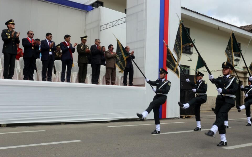 El gobernador Roger Guevara Rodríguez presidio ceremonia cívico militar en la cual funcionarios y servidores de la Gerencia Regional de Planificación, Presupuesto y Acondicionamiento Territorial desfilaron en la histórica plaza de Armas._